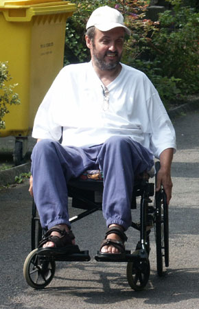 John practising his 'wheelchair dancing' at Icknield Court, Princes Risborough