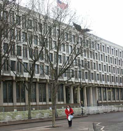 Marge at the American Embassy, Grosvenor Square