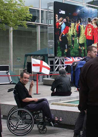 Waving the flag, Milton Keynes city centre - June World Cup, 2002