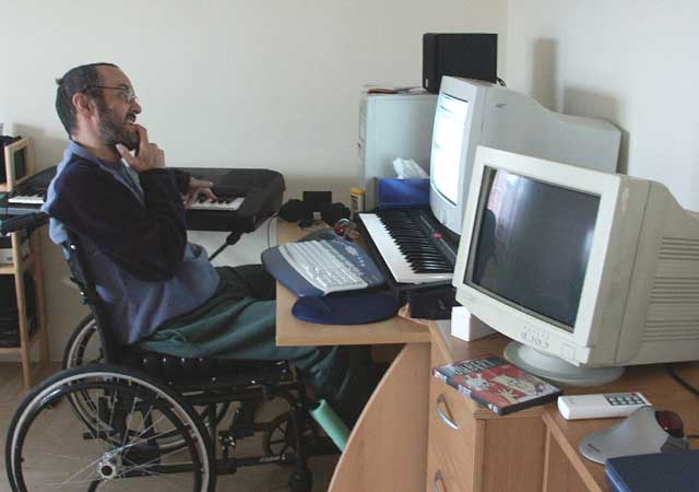 John composing in his flat at Middleton, Milton Keynes
