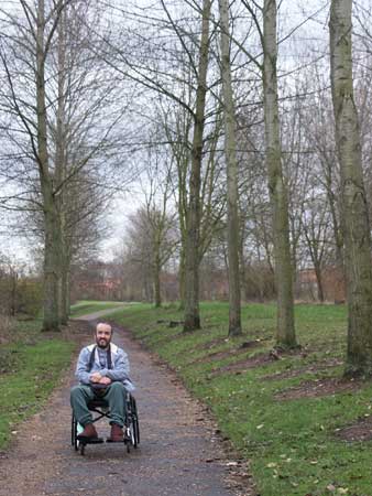 John on a tree-lined footpath at Middleton, Milton Keynes