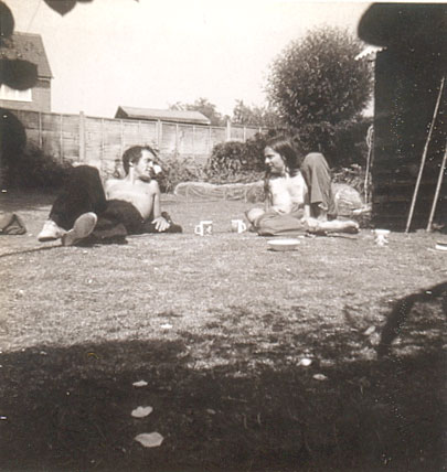 John and Michael resting after a game of badminton at Stanley Hill - Summer 1975